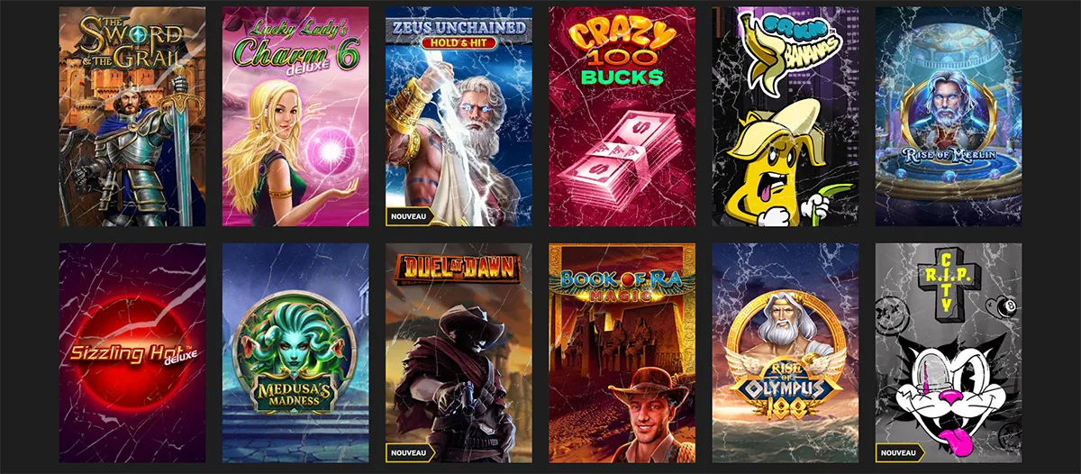 Nous offrons une collection impressionnante de machines à sous qui satisfait tous les goûts. Notre ludothèque inclut les dernières créations de NetEnt et Pragmatic Play.